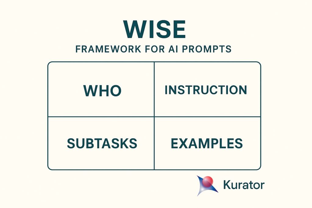 Unlock the full power of Kurator’s AI integration by structuring your prompts with the WISE framework for prompt engineering. WISE