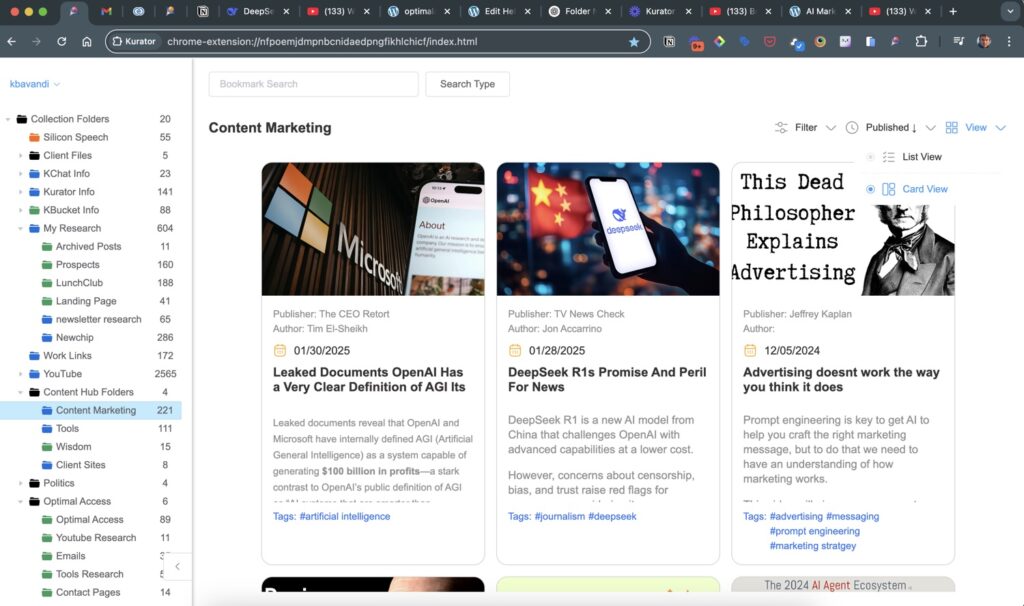 By default, the program views are set to card view, but Kurator remembers your settings per folder and will display the posts based on your previous settings.