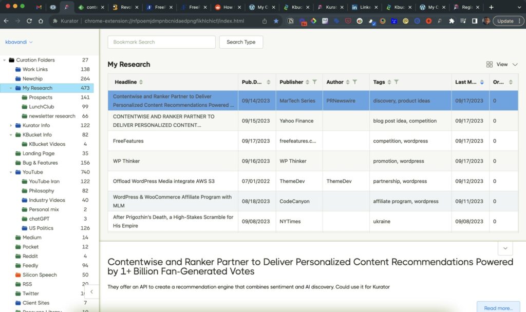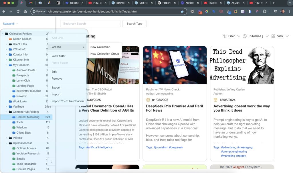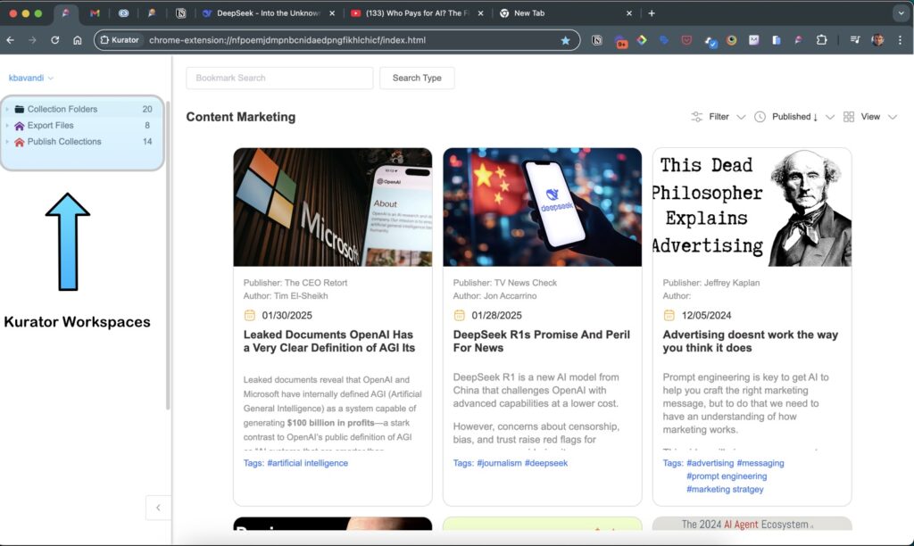 Kurator offers three workspaces for saving and publishing your bookmarks.