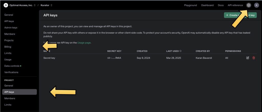 Once you log in, access the openAI dashboard from here (same link is in your Kurator dashboard).