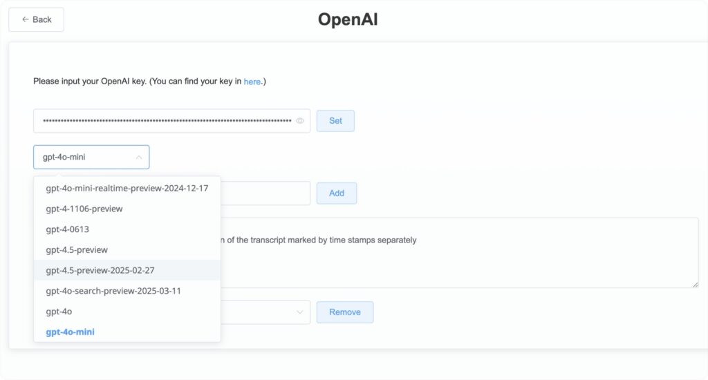 For most applications, the GPT-4-mini will suffice. It is a low-cost and powerful solution for creating summaries, transcripts, and general research.